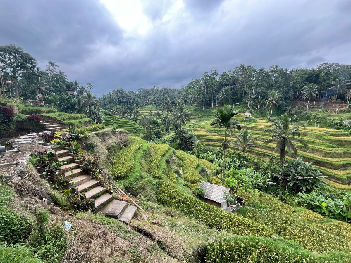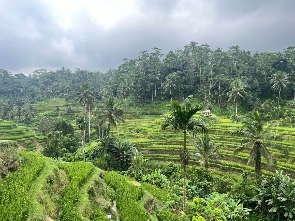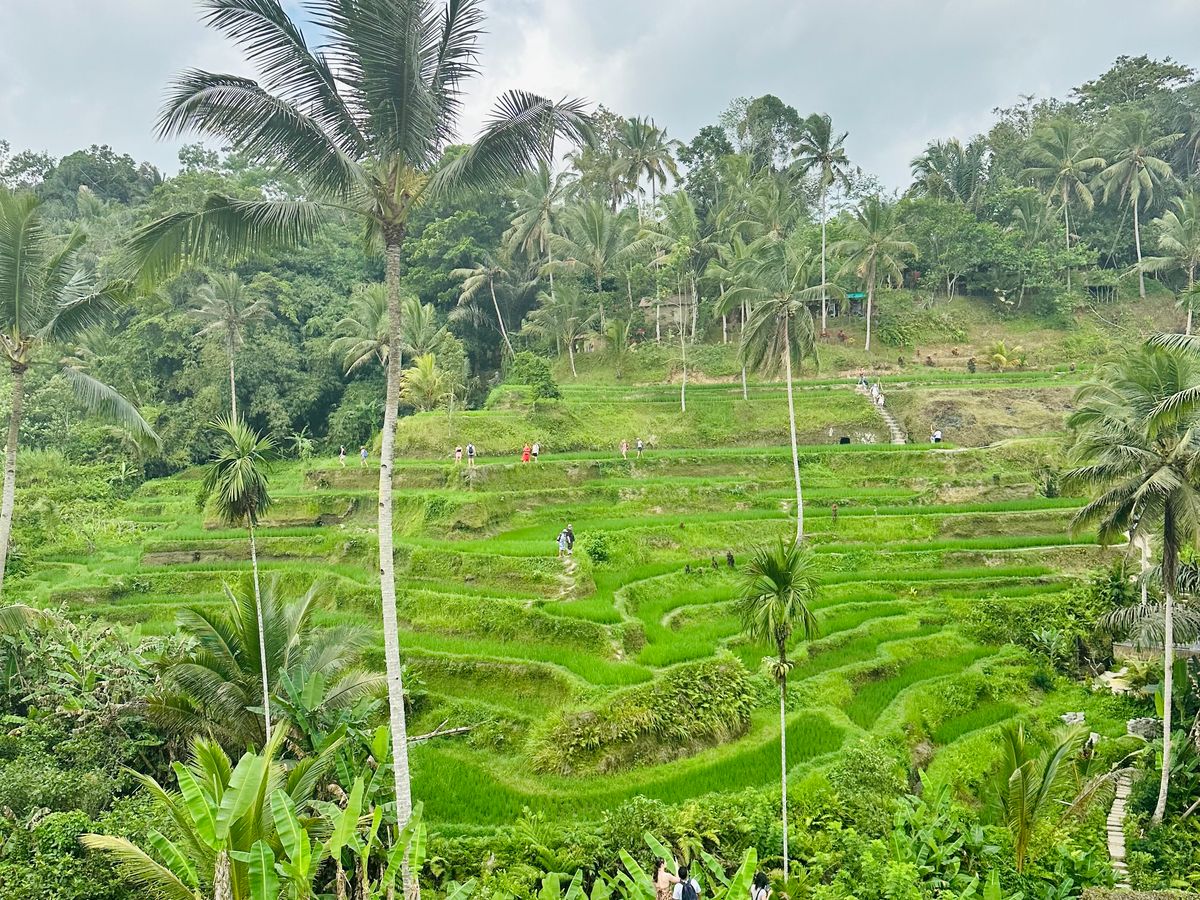 帰国する最終日は夜のフライトなので、それまでの有効活用と空港までの足の確保が必要なことから、初日のツアーで貸切の利便性とベテランガイドさんの安心感を踏まえ、貸切チャーターで回りつつ、最後は空港へ送ってもらうことにしました。これまでのツアーで行けていないライステラスや王宮を含む市街地といったウブドエリアと、ビーチとショッピングセンターを含むクタエリアという、いわばバリ島の定番エリアを訪問できました。順調に予定をこなして空港に向かう段になったとき想定外の状況が起きました。チャーター時間制なのとフライト時刻が決まっているなか、クタエリアから空港に向かう時、定常的にも渋滞することに加え、ちょうどお祭りの人出に遭遇し全く身動きが取れなくなり、フライトまで時間があるとは言え少々焦る事態になりました。この状況に対してガイドさんとドライバーさんは抜け道を駆使して少々の遅れはあったものの無事、想定時間内に空港に到着でき一同ホットしましたが、お二人には感謝しかありません。