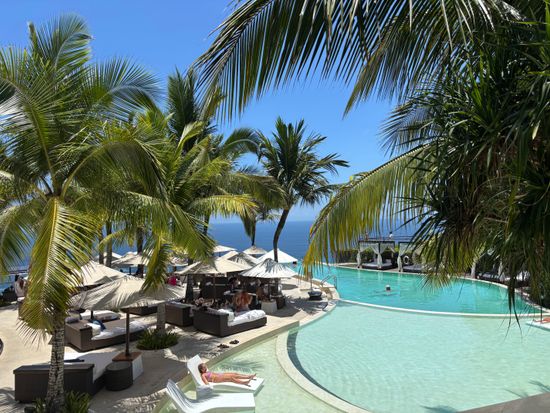 エントランスから温かく迎えてもらい、素晴らしい景色のラウンジとプールに案内されました。プールの先端は写真通りの景色です。広さや透明度は予想よりやや低いですが、全体的に素晴らしかったです。アフタヌーンティーも全て美味しかったです。天気が良いことが前提ですがお勧めします!