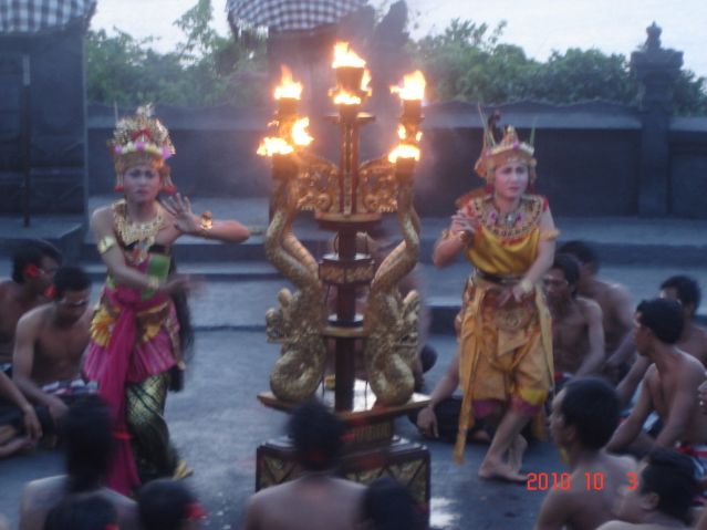 絶好のロケーションで見るケチャダンスは笑いの要素も取り入れてあり、ショーとしても十分楽しめます。途中本当の火を使うので、火が怖い方は最前列には座らない方が良いと思います。