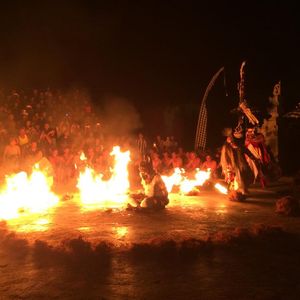 浜辺にあるレストランで砂浜にある席で食べました。私はシーフードが食べられないのを最初から伝えて居たので無料でサテに変えてくれて本当に嬉しかったです。席からは左手にビーチ、右手にバリ舞踊のダンサーという形になります。途中物売りのおばさんが砂浜から侵入してきたりするので注意。私は交渉の末、打ち上げ花火(5発)を1本だけ50000ルピアで購入しましたが、最初は2本で200000ルピアと言われました。私は一人旅でしたが私の為に花火が上がるという体験は初めてだったので50000ルピアはそんなに高くないと思いました。