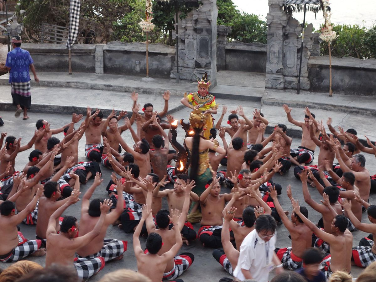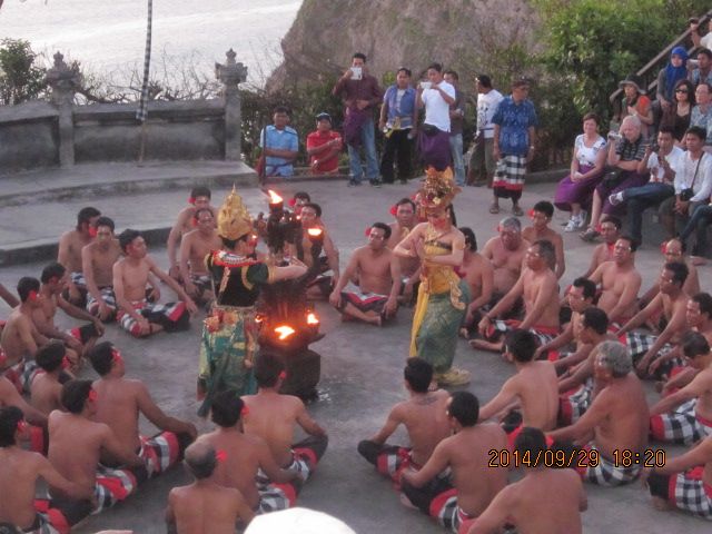 ウルワツ寺院で夕陽を見ながらのケチャには感動!ダンサーさん達も一生懸命で中々の迫力。ロケーションもいいし、ケチャ見るならウルワツ寺院はオススメです。