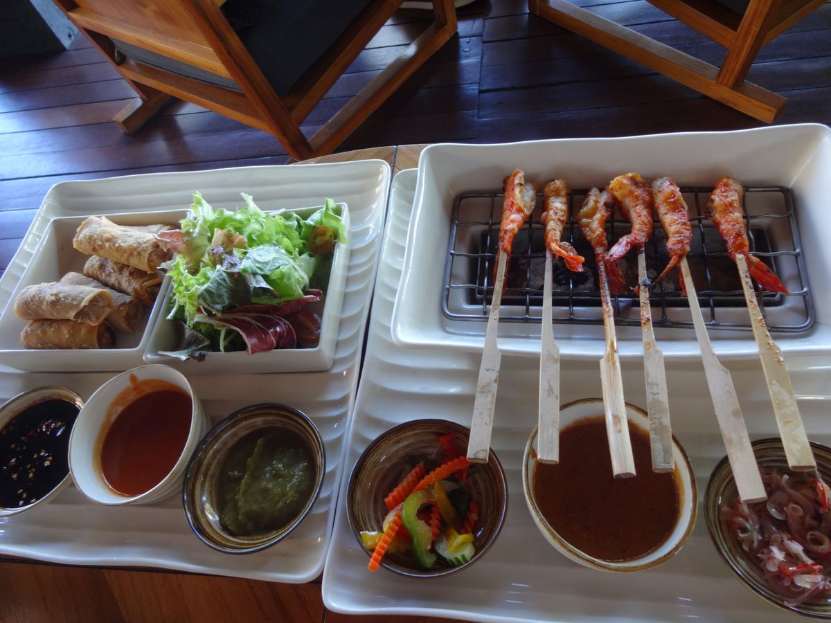 バリらしく、串焼きの海老やサラダなどの後にスコーンとデザート。紅茶はおかわり自由で、2時間ほど海や空や気持ちいい風を感じながら、ゆったりまったり。