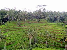 20分位車に乗って、テガラランに着きました。ライステラスは稲が青々していてキレイでした。バリ島では常に暑いのでいつでも田植えができるそうです。