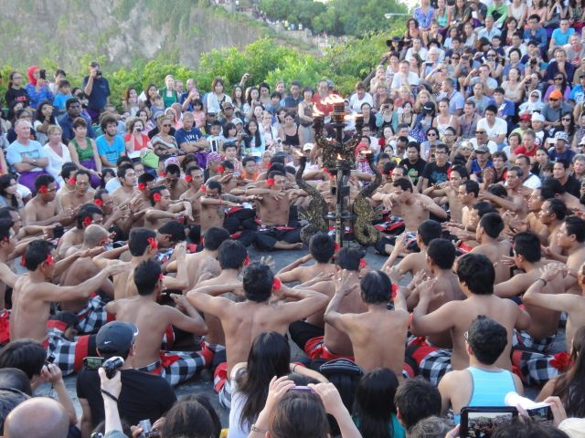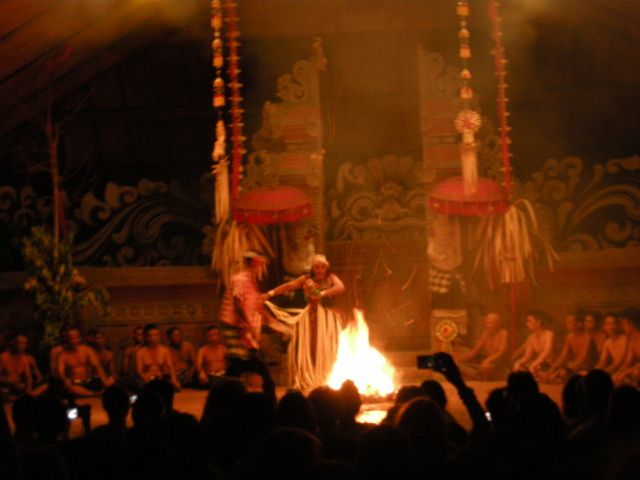 10年以上前の話なので、この場で引き合いに出すのが正しいかわかりませんが、以前見たものは迫力・雰囲気ともに数段勝るものでした。それに比べて、今回のケチャダンスは完全なショーだったと思います。観光ガイドやいわゆる旅行代理店のパンフレットには、バリでもレベルの高いケチャダンスだといった謳い文句がならんでいますが、ケチャダンスには引き込まれることもなく、ちょっと物足りない感じがしました。期待していたのは、トランス状態に入ったようなダンサー(というか、チャ、チャ、チャと発声する人達)の迫力あるケチャダンスだったのですが、その観点からはがっかりです。