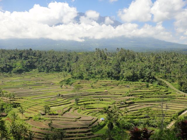 途中、棚田の光景もきれいだった。バリは年3回米がとれる。作付け時期はいつでもOKなので、田植えが終わったばかりの田んぼと稲穂がたれて稲刈りまじかの田んぼが隣り合わせなどというありえない光景が見られた。