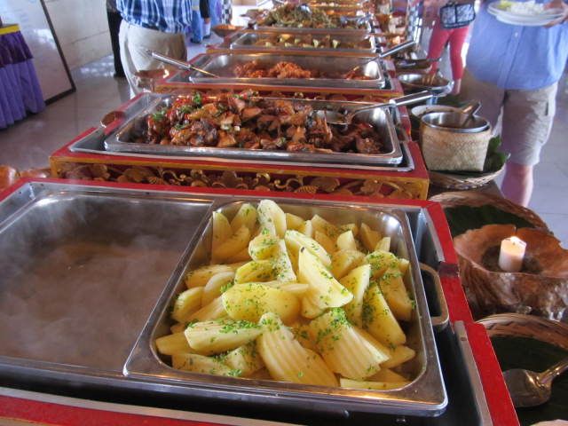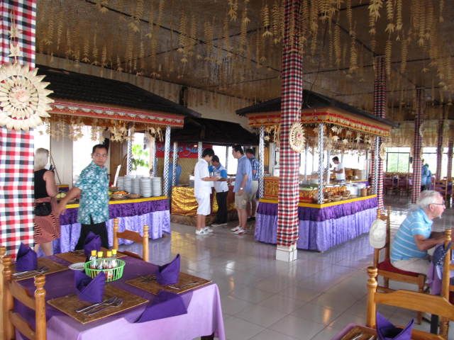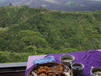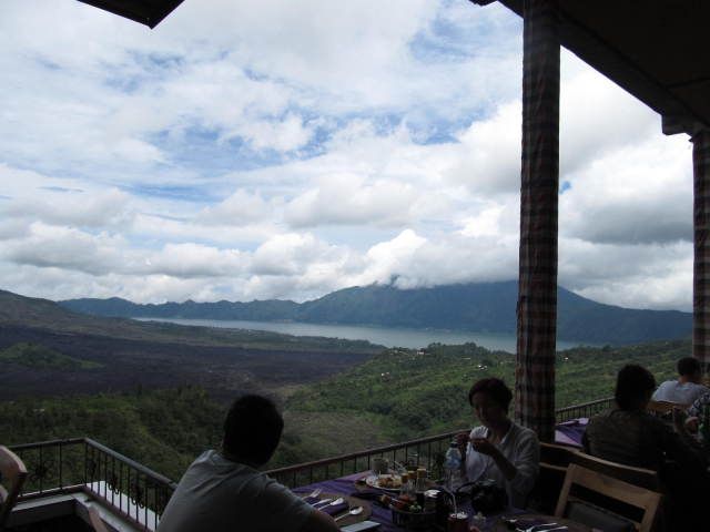 キンタマーニ高原のランチ、景色がとてもよいレストランで、バイキングだったのでいろいろと食べられてよかったです。味は普通でした。