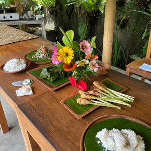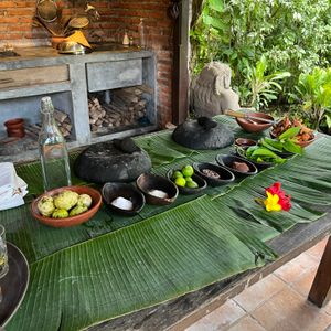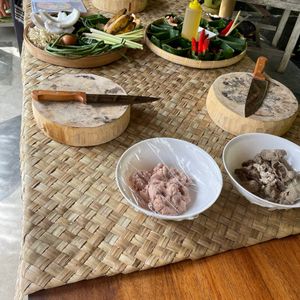 Warung Titiでのクッキングクラスでは、バリ島の伝統的な調理方法を体験していただきたく、少し手間がかかりますが、あえてスパイスやハーブを石臼ですりつぶしたり、ココナッツをすりおろしたりしていただいています。