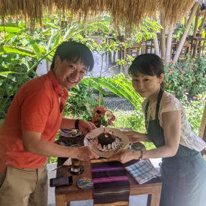 宿のロケーションにもよるが、私たちの場合、渋滞の中スコールも重なり、往復5時間の移動となった。決して乗り心地が良くないスズキAPVに揺られ子供たちはぐったり。到着後は生産工程の簡単な説明が英語であり、その後実際のチョコレート作りだが、溶かしたチョコレートを型に流し込みトッピングを乗せるだけ。あとは固まるのを待ち終了。実際手を動かしたのは10分くらいだろうか。待ち時間に隣接している象牧場?のような所でエサやりなど楽しめた。空港や土産物店でもよく見るPODの箱に入った状態で受け取り終了。近くで参加できる他のコンテンツと組み合わせるべきだった。子供は自分で作ったチョコが食べられて嬉しそうだった。