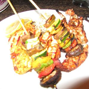 クタのホテルからジンバランの現地に到着する迄の道は毎日かなりの渋滞があるみたいできっちり1時間掛りました。ピックUP時間は予約時間の1時間前になるのでそちらを考慮した上でのディナータイムを決めると良いと思います。当日は私達夫婦のみでしたのでちょっと寂しい感じもしましたが何か特別な感じもしました。雰囲気も良くバリ民謡の生演奏もありでメイドの方は日本語も話せるので安心して参加する事が出来ました。お料理のメニューは前菜のサラダ、パン、メインのシーフード、そしてデザート&コーヒーと言ったシンプルなコースでしたがシーフードのメインではロブスター、エビ、イカ、焼き野菜、付け合わせにポテトがありお腹一杯になりました。