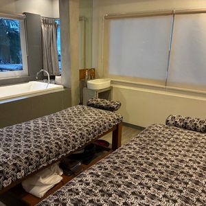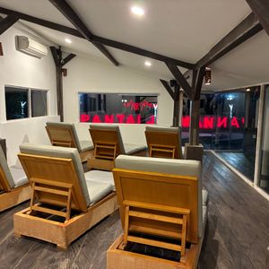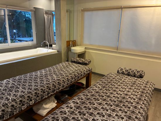 深夜便のため帰国前で予約しておきました。12:00にホテルをチェックアウトしてロビーで待っていると12:25ぐらいにお迎えに来てくれて時間通りにスパに向かいました。着いたらレセプションでウェルカムドリンクを頂きながら誓約書など記入しました。その間にツーリストらしい西洋の方が予約しに来ていましたがスムーズに対応されていました。その後1階のスパルームへ移動しました。通りに面していますが奥ばっているので歩いている人と目が合うとかは全然ありませんでしたしレビューに書いてあった様な心配は全くありませんでした。ベッド3台とシャワールームとバスタブがありました。最初仰向けで足元からマッサージしてもらいその後うつ伏せで背面をやってもらいました。バリニーズを選んだので終始柔らかいタッチでした。その後一旦シャワー浴びて着替えて2階へ移動し横になってフットと最後にヘッドスパをやってもらいました。天気が良かったので部屋から海がみえるビューが素敵でした。