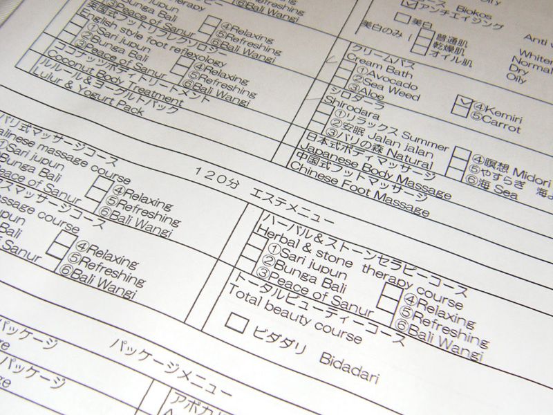 まずは日本語が出来るスタッフにてカウンセリングとアロマオイルの選択をしてから、フットバス→バリニーズマッサージ→フラワーバスの順番です。