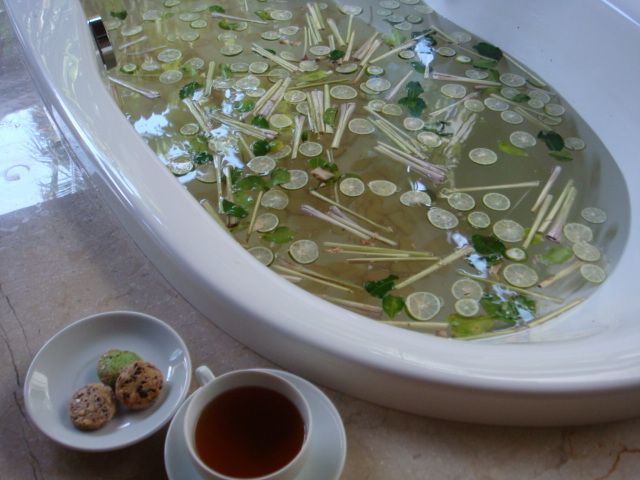 ボタニカル・へブンはバラ尽くしのコースです。しかもブルガリアローズ使用とのこと・・・高貴な香りが漂います。丁寧に足を洗って頂いた後は、バラのオイルマッサージ→バラのルルール→バラのフラワーバス。オイルマッサージはとっても気持ち良くて、途中で眠ってしまいました・・・。最後のフラワーバスでは無数のバラの花びらに囲まれながらハーブティーとクッキーを頂きます。幸せです。カーテンがそよそよ風になびいて、ガラス張りの窓からはサンサンと光が降り注ぎ、緑も綺麗。静けさの中での優雅なひととき…なんて贅沢なんだろう!!