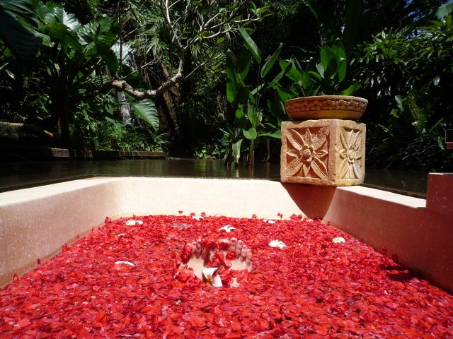 5時間半のコースに申し込みました。ホテル10時半にピックアップ11時開始でボディから始まり大変気持ちよかったです。半分は熟睡していたと思います。フェイシャルの方は日本でエステに行ってますが、技術の違いがあるのでそれなりでした。フラワーバスはハートの模様が描かれてとてもかわいく写真を撮りました。
