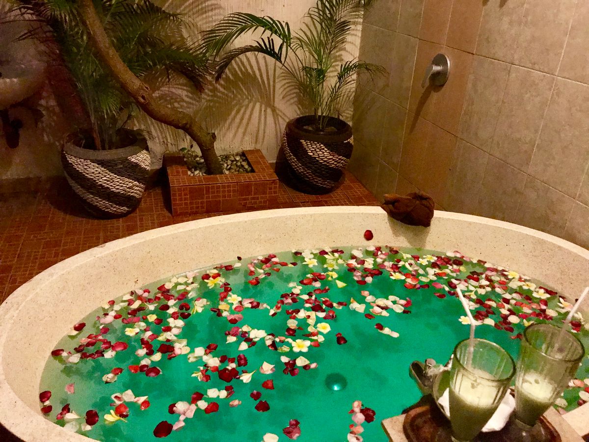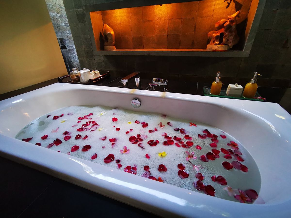 スパはマッサージとボディースクラブ。フラワーバスもあり、お肌もスベスベでとても満足いくものです。夕食もボリュームたっぷりでとても美味しかったです!スパ以外はヴィラでお昼寝したり、夕飯を食べたりとても優雅に過ごせました!自転車も借りれるようで、ビーチに行ったり、ショッピングしたりするもできるようです。