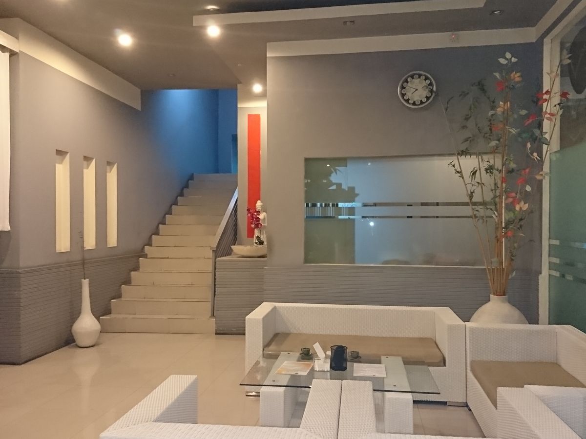 オレンジジュースをいただき、施術に関する簡単なアンケートを記入します。待合ロビーは広くきれい、受付スタッフは日本語を話し、安心感があります。