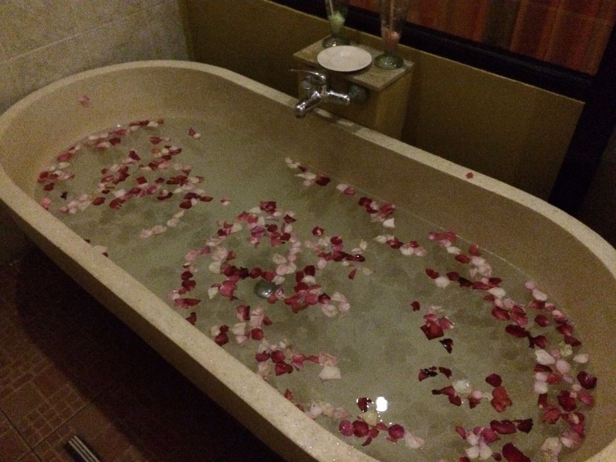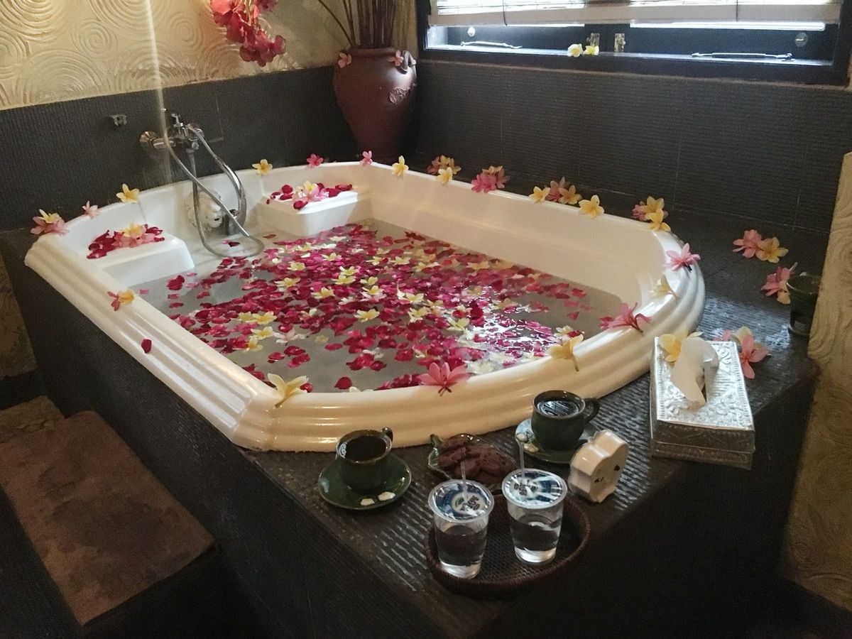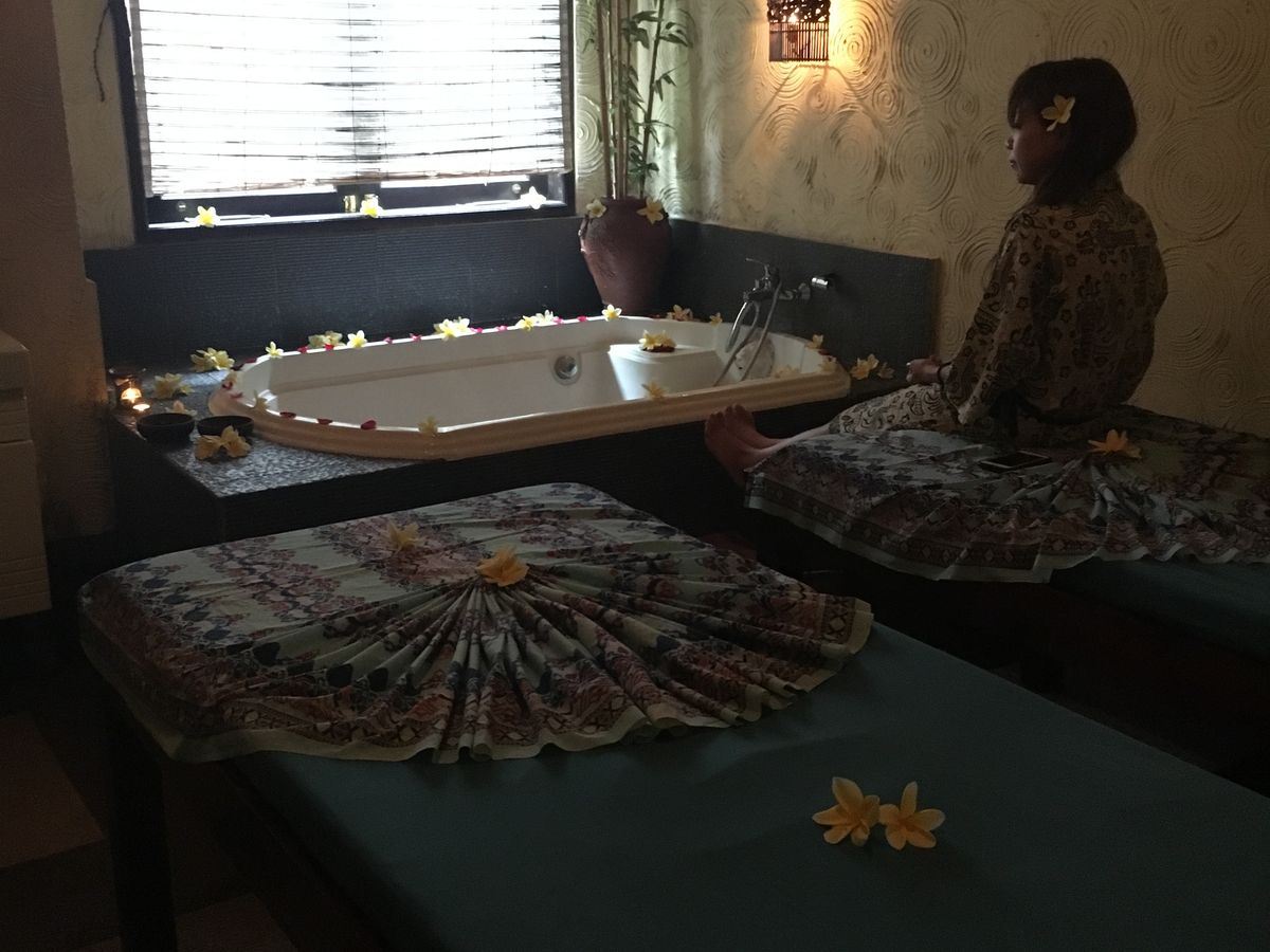 最初はボディーマッサージから始まり、あったかい石でマッサージしてもらってフラワーバスもフラワーでバスタブに名前が書いてありました。とても感動しました!あとはフェアシャルマッサージも