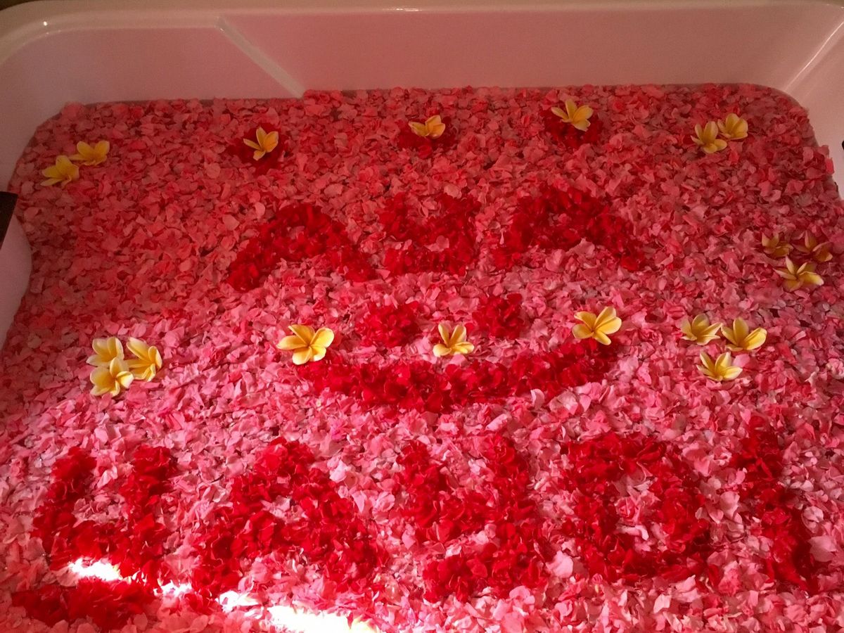 施設内はとても清潔でVIPルームの雰囲気もよかったです。マッサージも手を休めることなく加減を確認しながら丁寧にしていただきました。ホットストーンでもしっかりマッサージして頂きとても気持ちがよかったです。フラワーバスは他者様の投稿で写真は見ていましたが、実際に自分の名前で作っていただくと嬉しいものですね^^*