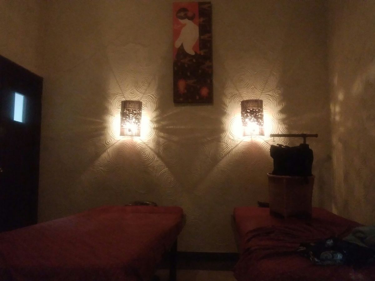 夜の20時30分~23時まで、私は、アジュナボディ(バリニーズボディ)とシロダーラ(脳のマッサージ)、妻はアジュナボディ(バリニーズボディ)とアジュナクリームバスのサービスを受け、満足した時間を過ごしました。