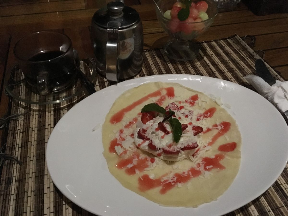 スパの後はお部屋の前のテラスでお食事とアフタヌーンティーのデザートです。どちらも美味しく頂きました。