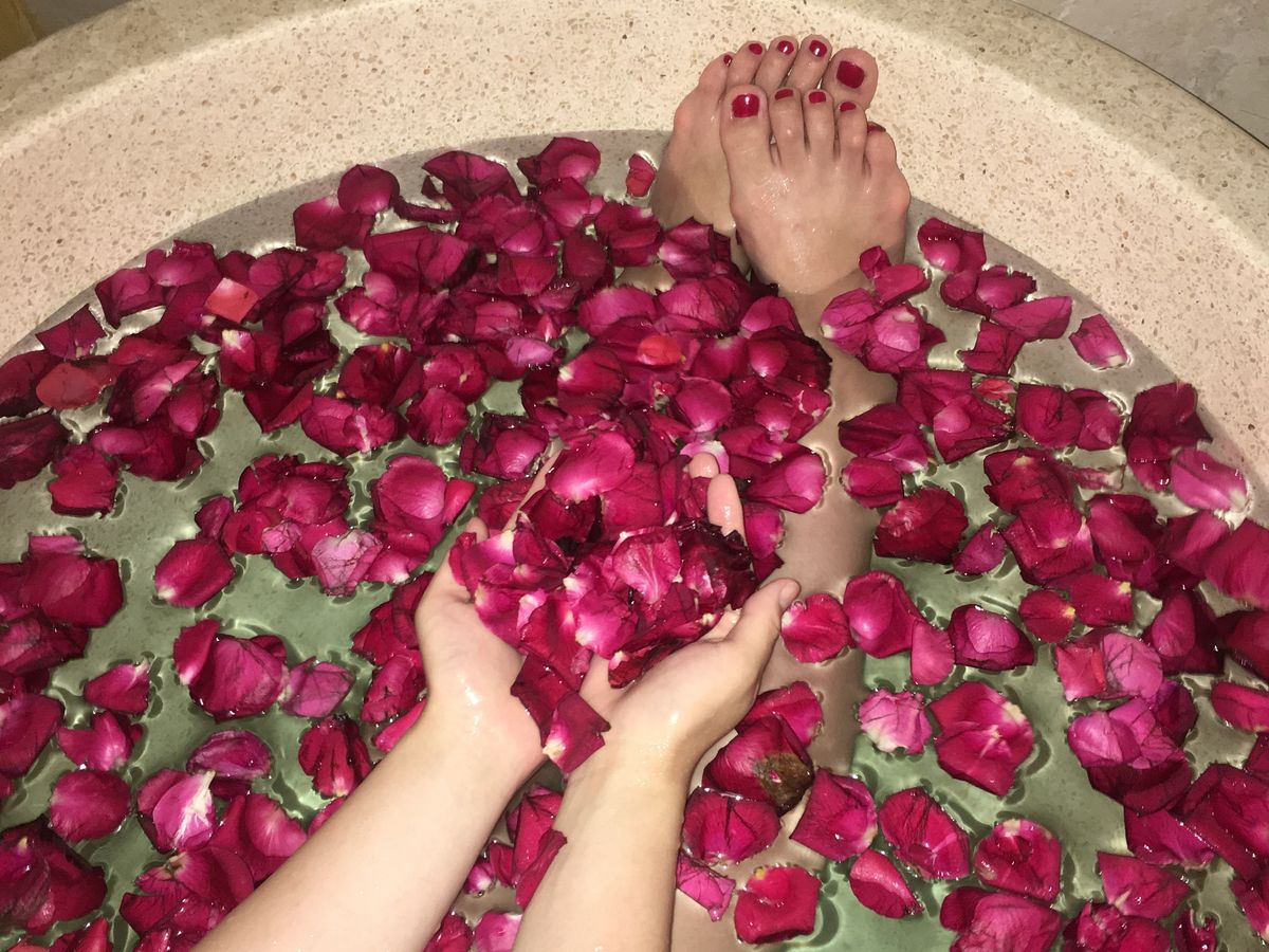 フットケア→ボディマッサージ→ホットストーン→フラワーバスに入りながらお茶タイム→シャワー→ヘッドマッサージ(シャンプーも込みで)