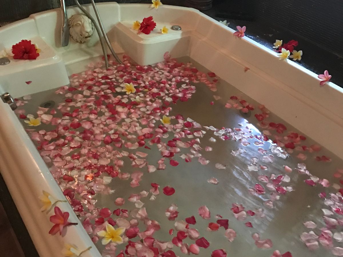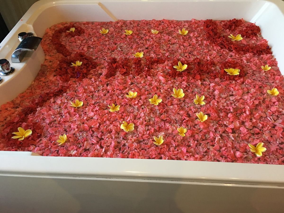 マッサージを受けてみて期待が大きかったからか正直こんなものなのかな?という物足りなさを感じました。また気になったのはフラワーバス。事前に生花のため虫が取り切れない、お湯に浮かんでいることがあると説明書に書いてありました。実際に毛虫を数匹お風呂に入りながら見つけ、これだけの生花を使っているのだからいても仕方ないなと思いました。シャワーもあるので入浴後念入りに払い流しました。