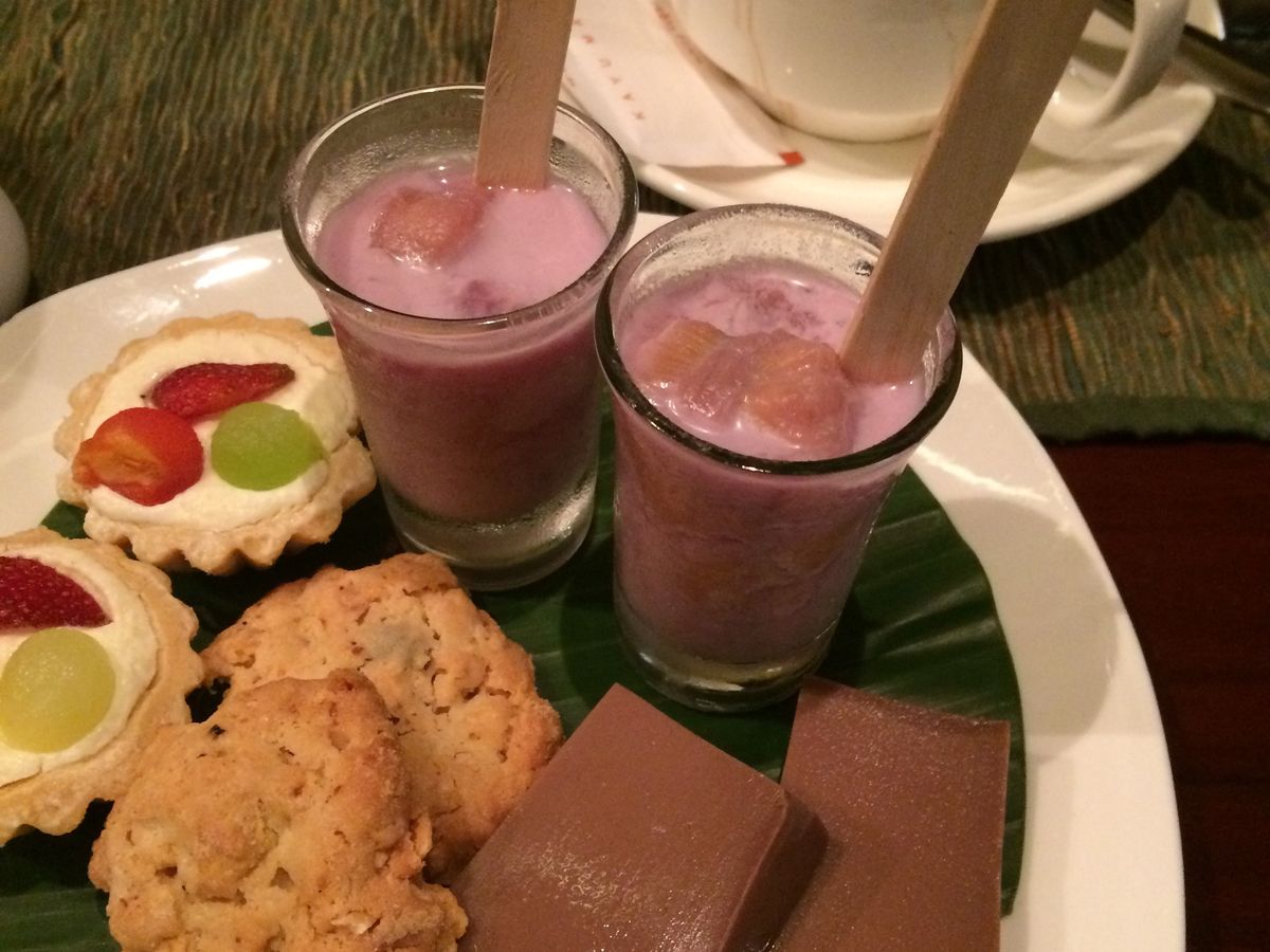 ホスピタリティが素晴らしいのは勿論のこと、特に印象に残ったのは食事の質の高さです。これにはウェルカムドリンク、アフタヌーン・ティーも含まれます。部屋に用意されていたオリジナルクッキーも!