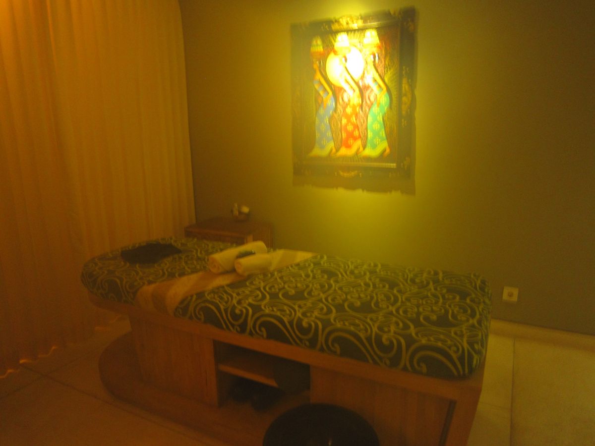 初バリ、最終日のエステ。長時間のスパで食事つき&空港送迎ということで予約しました。よかったことは小高い丘から景色を眺めながらの休憩♪何度か提供いただいたフルーツジュース♪ホットストーンのマッサージが気持ちよかったです♪フラワーバスに感激しました!残念だった点は長時間のシロダーラで首を痛めたことです。途中でギブしました。オイルマッサージが気持ちよかったのでおみやげを買って帰りました。
