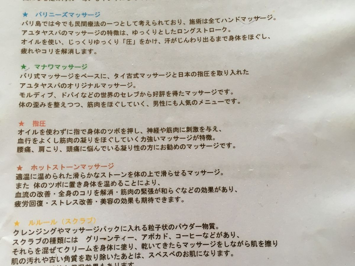 以上です.キチンと意見を言えばこれらも解決していたかもしれないのでもし行く予定の方はきちっと確認することをオススメします.以上の点を含めて,リアンスパはオススメです.