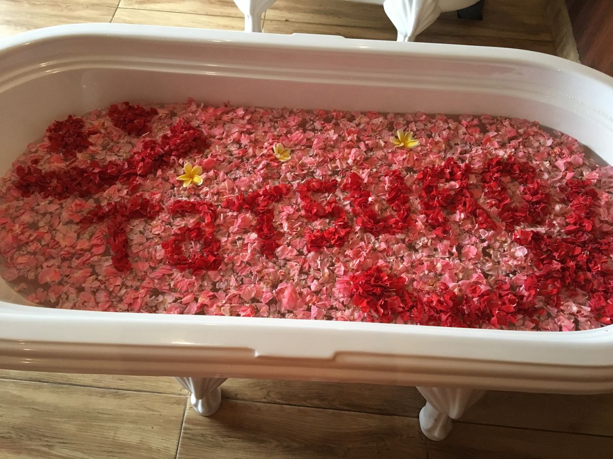 また、花がたくさん入ったフラワーバス(ブンガパチャフラワーバス)にして欲しい、という要望にも快く対応してくれました。素敵なバスタイムでした。