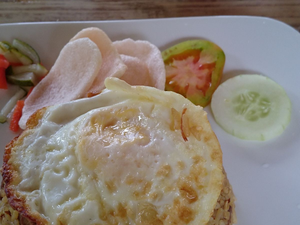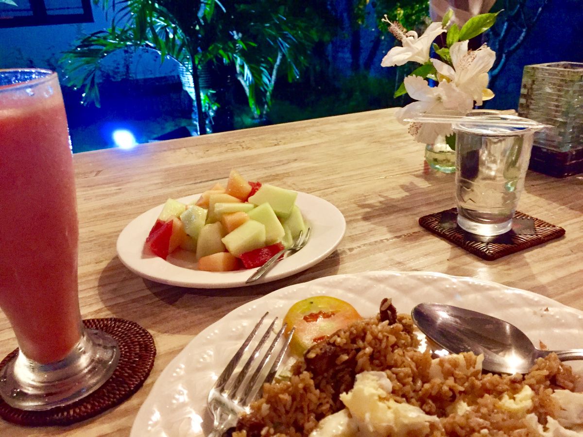 途中のごはん「ナシゴレン」滞在中食べた中で1番おいしかったです。日本人の好みの味なのかも。おススメです。
