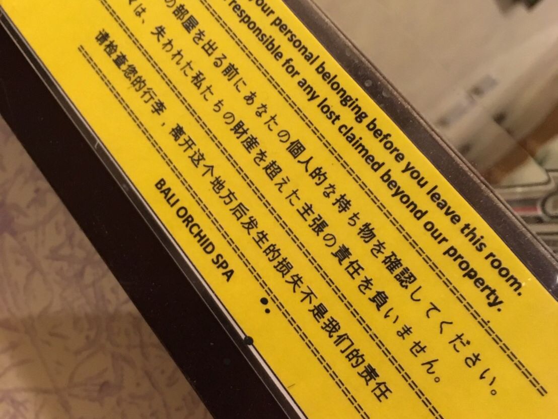 飛行機遅れてピックアップに15分遅刻してしまって不安だったのですが、待っててもらえて一安心。女子2名で受けました。施術の前にアロマの匂いを決めたり、自分の受けたいマッサージアンケートを記入しました。お店の方は日本語が話せます。アンケートも日本語表記でした。