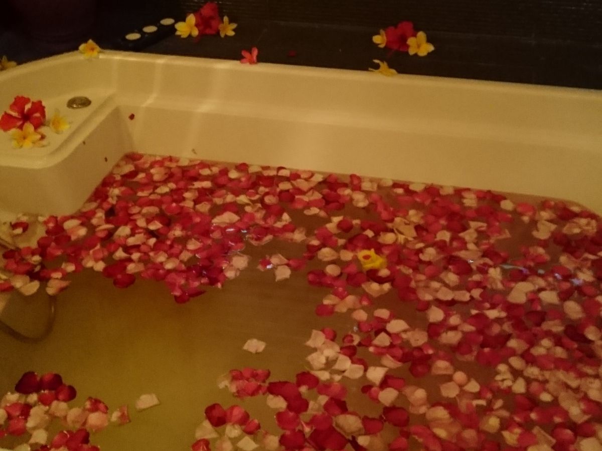 お花のバスタブにイニシャルで名前を作ってもらって最高の時間を過ごしました。