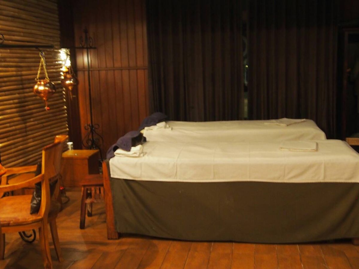 お部屋に連れて行ってもらいマッサージスタート。加減もちょくちょく聞いてくれるし、お部屋も素敵だし、スパも気持ちよくて2人とも寝ました。