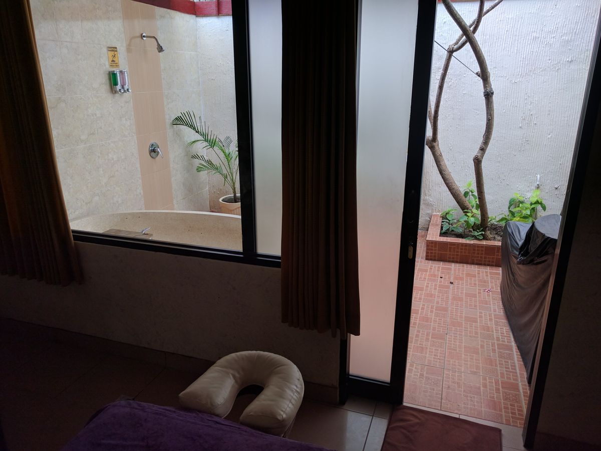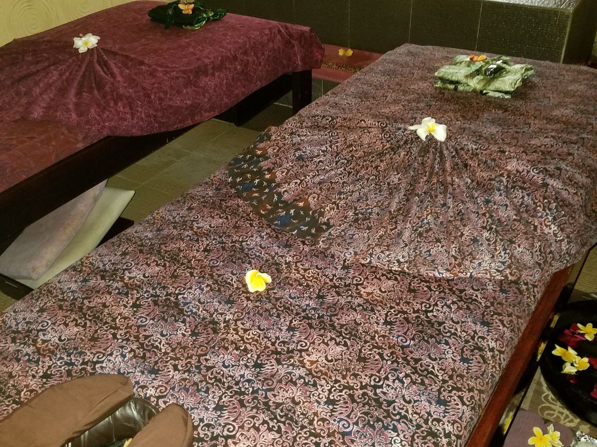 ツインの個室がいくつもあり、部屋内にトイレ、シャワー、バスタブがあり、鍵付きの引き出しに荷物を入れます。天井が高く、広いのでそれだけでゆったりした気分になり、マッサージもとても上手でした。フラワーバスも湯加減を聞いてくれるし、シャワーも熱いお湯が出ます。