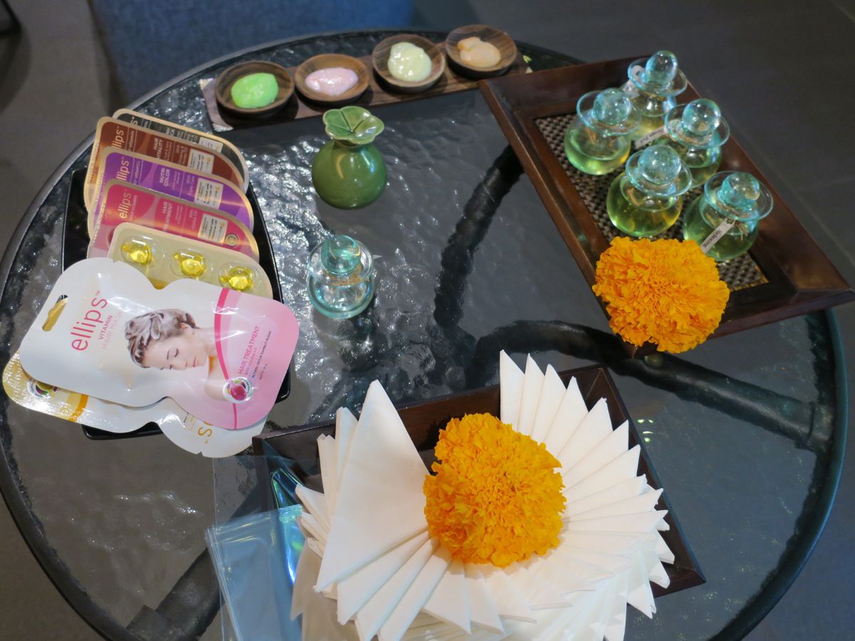まずウェルカムドリンクをいただきながら、日本語の問診表に記入し、オイルも選べます。