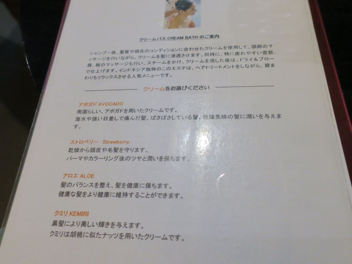 4種類のクリームから選べました。こちらも悩みましたが、南国向けの効果があるというアボガドを選びました。施術自体とても気持ちよかったのですが、今もまだトリートメント直後のような潤い感が続いているのが嬉しいです。