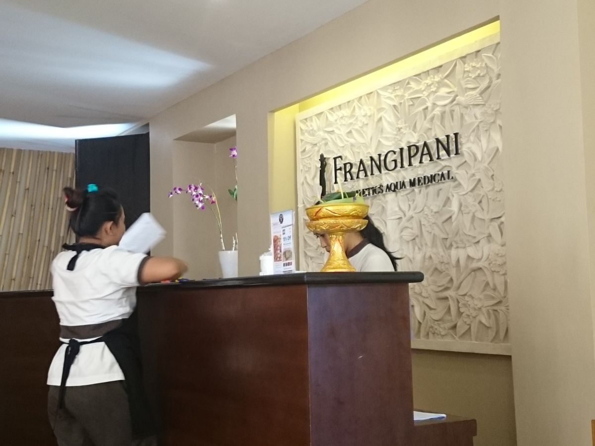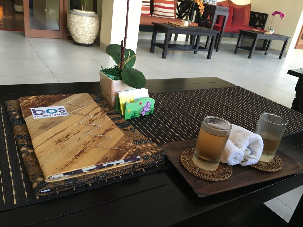 で疲れた体を癒すために,私と娘は,最終日の午後の予約をしてスパマッサージを受けました。街中の通りについたスパですが,その建物の中に一歩入ってみると外の喧騒とは打って変わって,まるで別の世界に入り込んだようなエキゾチックな雰囲気でした。天井が高くて広い空間,水をふんだんに取り入れたエントランス。ゆったり過ぎるソファに腰かけて,ウエルカムドリンクを飲みながら,本日のスパの内容確認のシート(全て日本語)を記入しました。マッサージの強さを記入する箇所があったので「ふつう」を選択したのですが,私達のイメージとはやや違い「つよい」と感じました。マッサージ中も「痛くないですか?」と度々声をかけて下さるので,「ちょっと強いです。もう少し弱くして下さい。」と日本語でお願いしたところ,弱めにマッサージをしてもらえました。部屋の中には,ずっとバリ風な曲が流れていて,マッサージを受けて気持ち良くなって意識が遠のきうつらうつら居眠りをしてしまうほどです。マッサージが終わると,部屋の一角にある,プルメリアの花びらが一面に浮かんでいるバスタブに入り,まさにバリのスパを感じる時でした。とってもゴージャスなひと時でした。シャワーを浴びて着替えると,ジンジャーティーとクッキーが用意されていたので,戴きました。ジンジャーティーが甘くて香りがよくて,おかわりしたいほどおいしかったです。3時間はとても長いのでは?と心配して行ったのですが,とんでもない。短くて「あら,もうそんなに時間が経ったんだ。」と思うほどです。スタッフも誠実でとても良い方々で,長い時間一生懸命マッサージをしてくれました。せっかくですから,バリに行ったら是非本場のスパマッサージを体験してみて下さい。