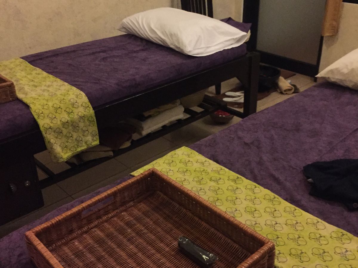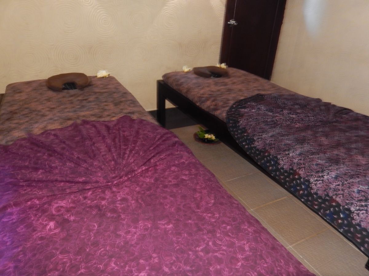 2人用の個室に案内され、紙ショーツに履き替え、スパ開始。個室には、トイレやシャワー、バスタブも併設。いたるところにお花や、アロマキャンドルがともされていたりと清潔感のある素敵なお部屋でした。最初は、ボディマッサージから始まり、「大丈夫ですか?」「痛くないですか?」と、気を使って聞いてくれました。女性なのに程よい力で、ゆっくりとした空間の中、あっという間の一時間。
