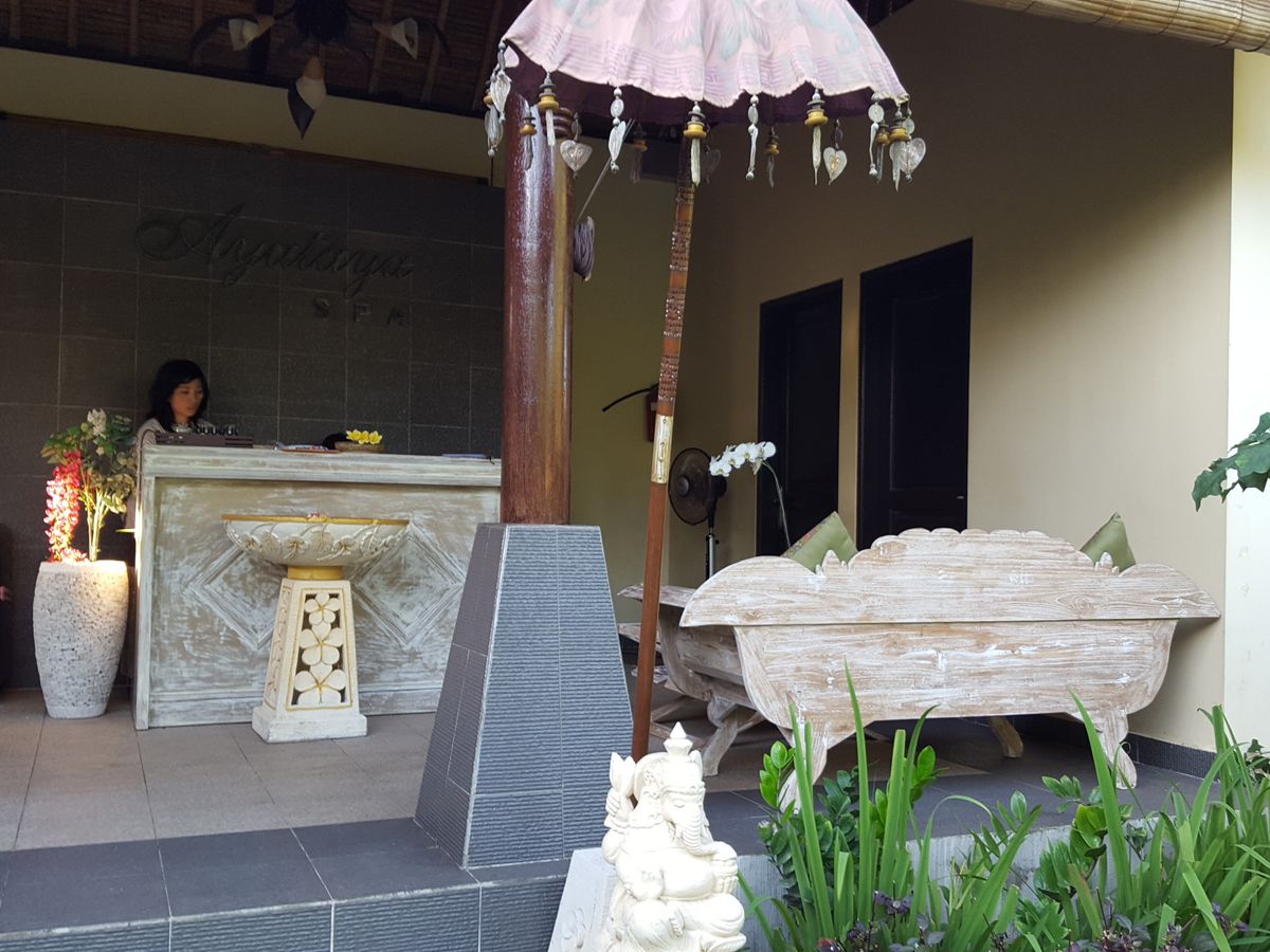 帰国直前、搭乗前の空いた時間を使って、素敵な癒しのバリエステを受ける事が出来ました。車での送迎付きで、まずバリのジンバランののどかな田園風景の中、鶏の声を聴きながら3時間のコースを楽しみました。受付の日本女性の丁寧な説明の後、本格的なバリニーズマッサージ、クリームバスなど、とても癒されました。途中、フラワーバスは初めての体験でしたが、新鮮なバラやプルメリアの香りにうっとりしました。入浴中レモンティーとクッキーのサービスも良かったです。低料金で本格的なエステと素敵な雰囲気を味わえるアユタヤスパを是非お薦めします。