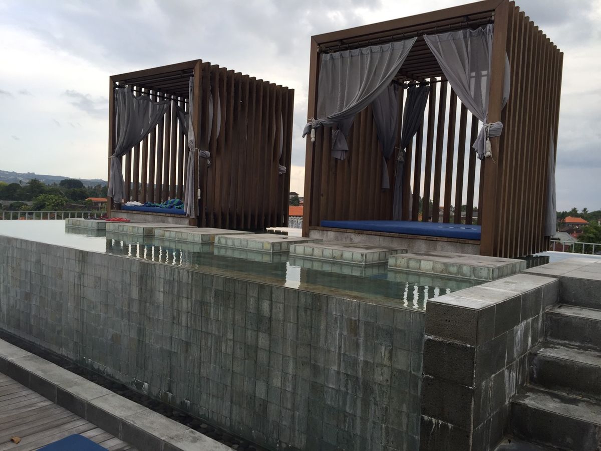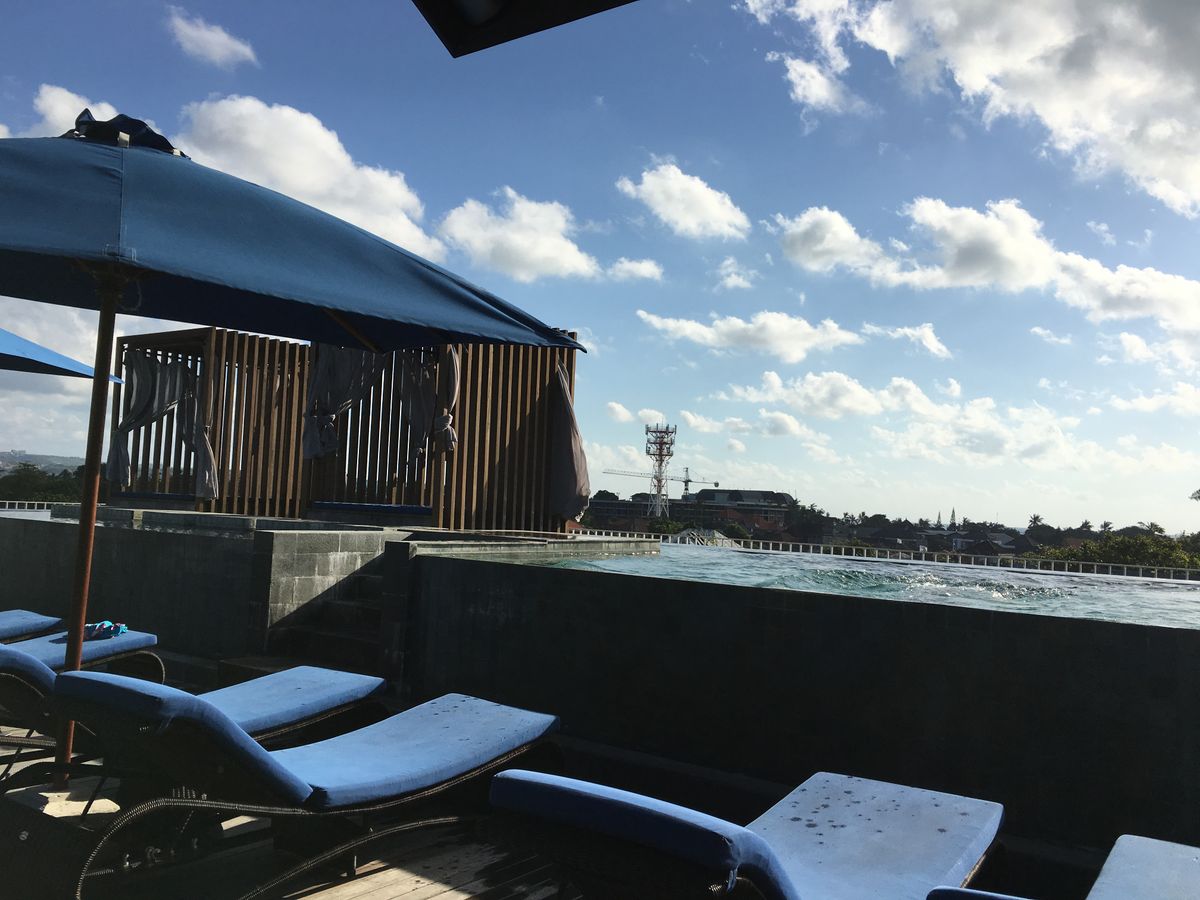 英国式リフレクソロジーは屋上のプールサイドの屋外ガバナに移動して行いました。スタッフの方に、昼間だから暑いかもしれないですけどいいですか?と言われましたが、せっかくなので屋上でやってもらうことに。私たちの時間帯は13時頃だったので、暑そうだなーと思っていましたが、屋上は爽やかな風が吹いていて、とても心地よかったです!