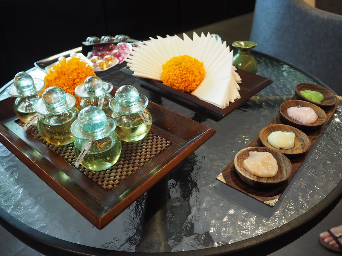 日本からあらかじめ受けたいスパの内容を伝えていましたが、現地でも今の状態や希望を問診してくれました。たくさんの種類の中から、自分のお気に入りの香りや効能のアロマオイルやヘアトリートメントが選べます!主人は6時間コース、私は妊娠中だったため、妊婦用の5時間コースが用意されていました。