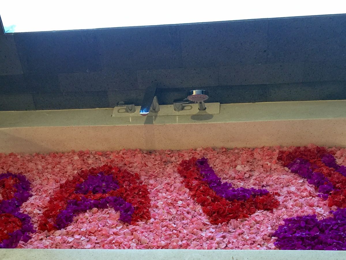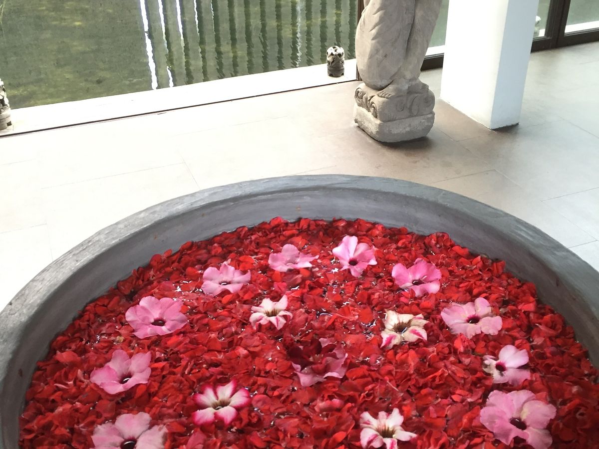 ウェルカムドリンクのジンジャーティーをいただくき、準備のために少し受付で待たされましたが、スパ施術スタッフは明るく、程よい指圧にマッサージを堪能。ただ、スパ途中に声かけがなく、いきなり冷たいボディースクラブが始まったり、このままの状態で何分おくのか…もわからず、目を覆られているので、びっくりする事が多かったです。1hのオイルマッサージから始まり、ボディースクラブ、続いて、アボカドパック、最後はフラワーバス。あっという間に3hが終了しました。