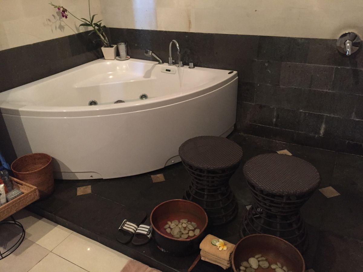 昼間ダイビングをたのしんだあと、少し遅めの時間にお願いしました。落ち着いた綺麗なマッサージルームに、バリの民族感溢れる音楽とフレグランスに調度品とバリ到着感満載でした。娘と二人でしたが、娘はローズバスの写真を撮ったり、調度品を眺めたりと、初めてのバリのマッサージを楽しんでいました。あとはホテルに送ってもらってぐっすり眠れましたので、翌日の早朝からのツアーは、全く疲れを感じませんでした。日本語もつうじますし、お茶やクッキーも日本人の口に合いました。これまでに6箇所ほどバリのマッサージサロンを利用しましたが、コストパフォーマンスが一番で、綺麗なサロンでした。
