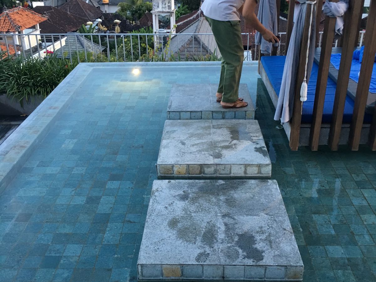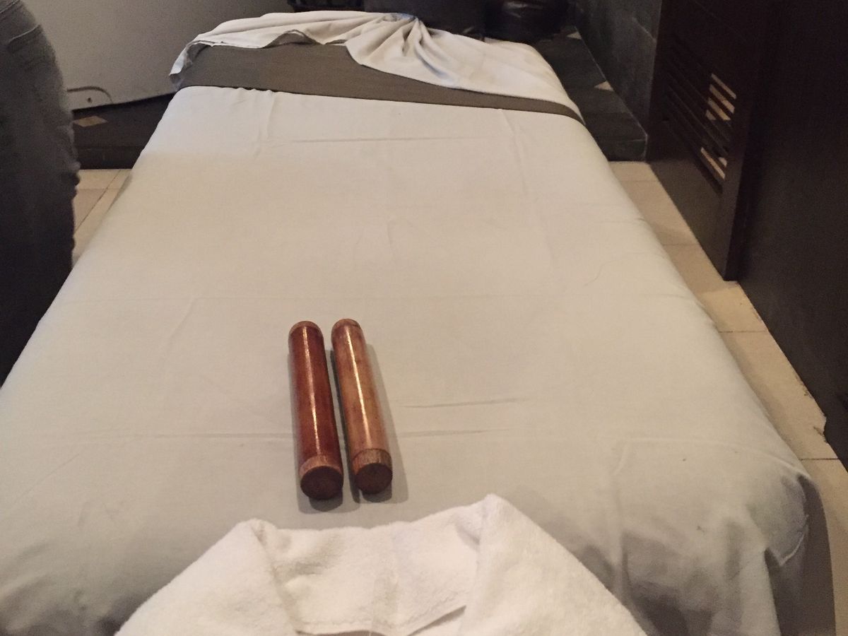 髪が乾いた後は、屋上のガゼボでマッサージ。ちょっと陽射しが気になりましたが、ビーチサイドで心地よい風を浴びながら、痛気持ちいいマッサージは至福の時間でした。たまに街中から、鶏の鳴き声が聞こえますが笑