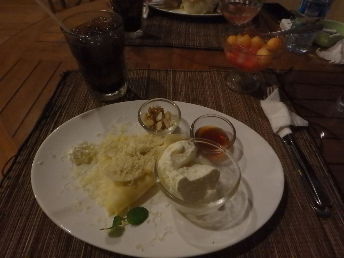 アフターヌーンティーはドリンクと日本でいうクレープ。これはまぁ普通です。