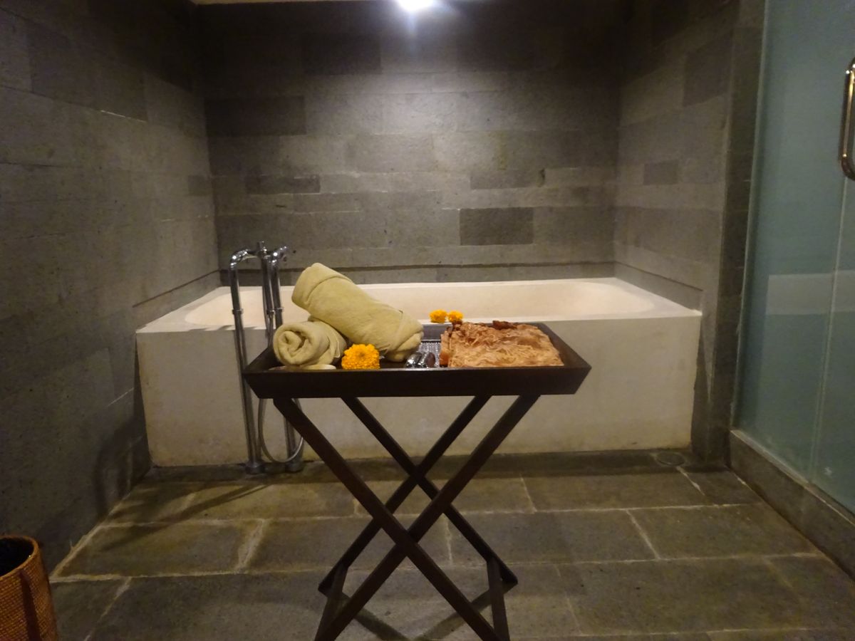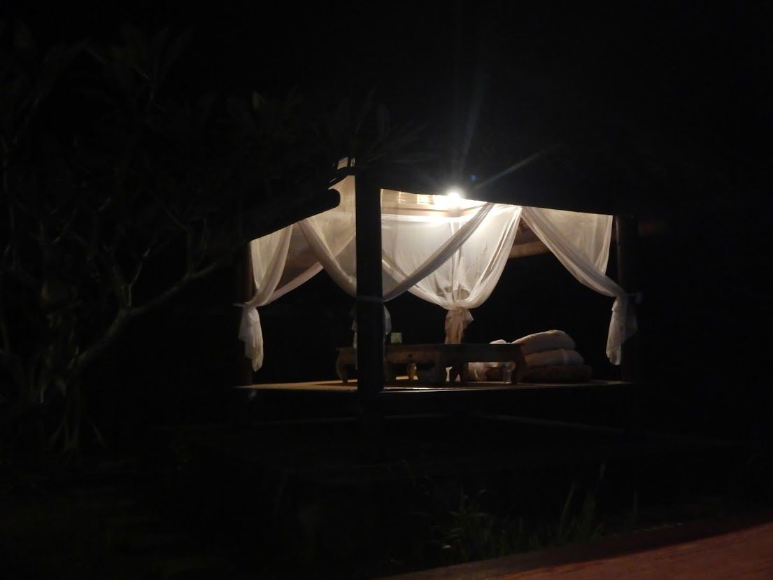 ウブドエリアに宿泊してたので、マンゴーの木の上で受けるスパを是非体験したくて申込ました。会場はもっと隠れ家的な高い木の上かと思ったら、ホテル自体、斜面途中に建設されている建物なので、真下からの高さはあるのでしょうが、あまり木の上という感じはないです。ただ、窓がないため開放感と自然をを感じられる、癒されるスパでした。