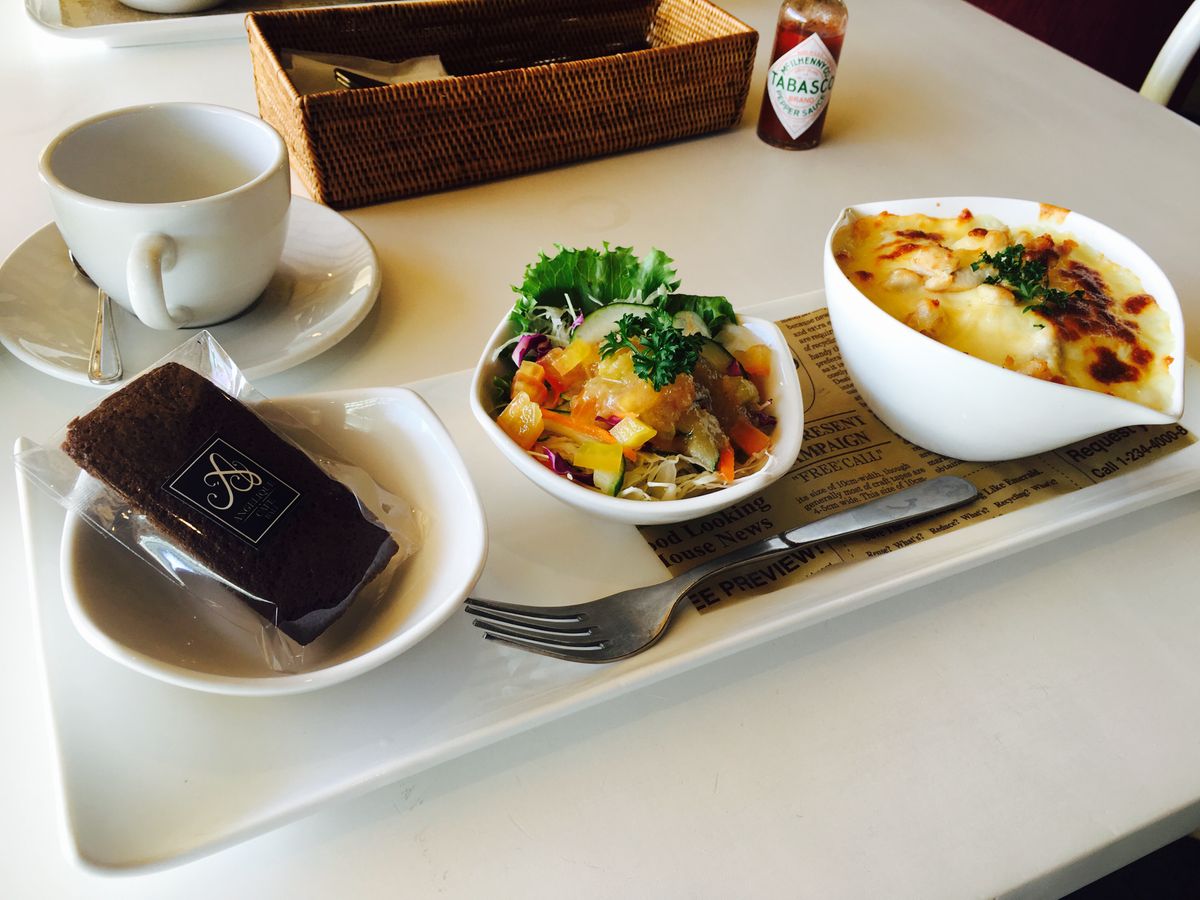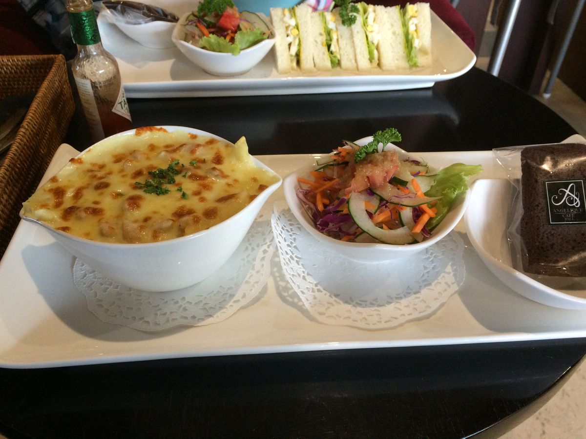 最後にアンジェリークカフェで軽食をいただきますが、これは外で食べました。施術前にこの軽食時の飲み物を選ぶのですが、ホテル内が涼しかったのであったかい飲み物をチョイスしたのですが失敗しました…。アンジェリークカフェで軽食を取る方は冷たい飲み物をチョイスすることをおすすめします。