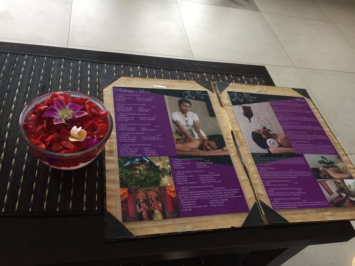 友達と最終日に半日リゾートプランを体験しました。全身のコースを2時間、足つぼ1時間、ヘッドスパ1時間、フェイシャルを1時間行いました。全身コースでは足の先から首までしっかりやっていただき、むくみも取れました。女性の方は胸のマッサージもおすすめです!さらにお花の入ったお風呂に入浴でき、ロールケーキや紅茶まで出てきて、とてもリラックスしながら、バリを感じることができました。ヘッドスバでは、自分で匂いを選べるトリートメントで保湿してもらい、サラサラになりました。日本に帰ってきても2,3日は残るくらい匂いが残っていました。足つぼでは、初めは痛いところもありましたがとても入念にやっていただき、最後は寝れるくらいまで気持ちよくなりました。フェイシャルでは、保湿をしっかりやっていただきました。顎のラインもすっきりしてとても気持ちよかったです、このお値段で6時間ほどスパを体験できたので、とてもお得だと思います。帰りは時間の関係でホテルに送ってもらいましたが、できればそのまま空港に連れてってもらうのが楽だと思いました。