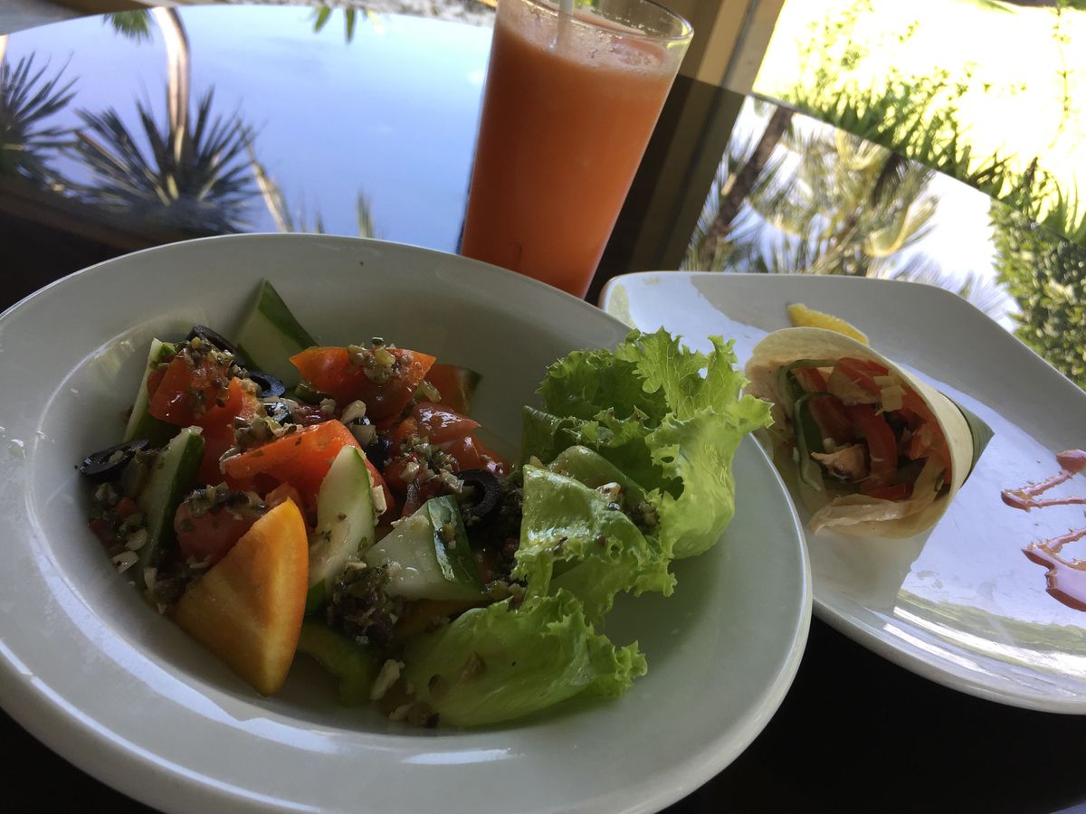 ただフレッシュ野菜たっぷりのヘルシーなメニューは、エステ明けには最適だと思います。2品選択なので、組み合わせを上手にすれば、それなりに満たされます!