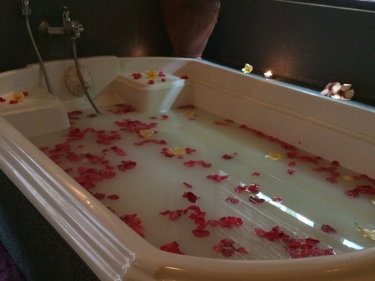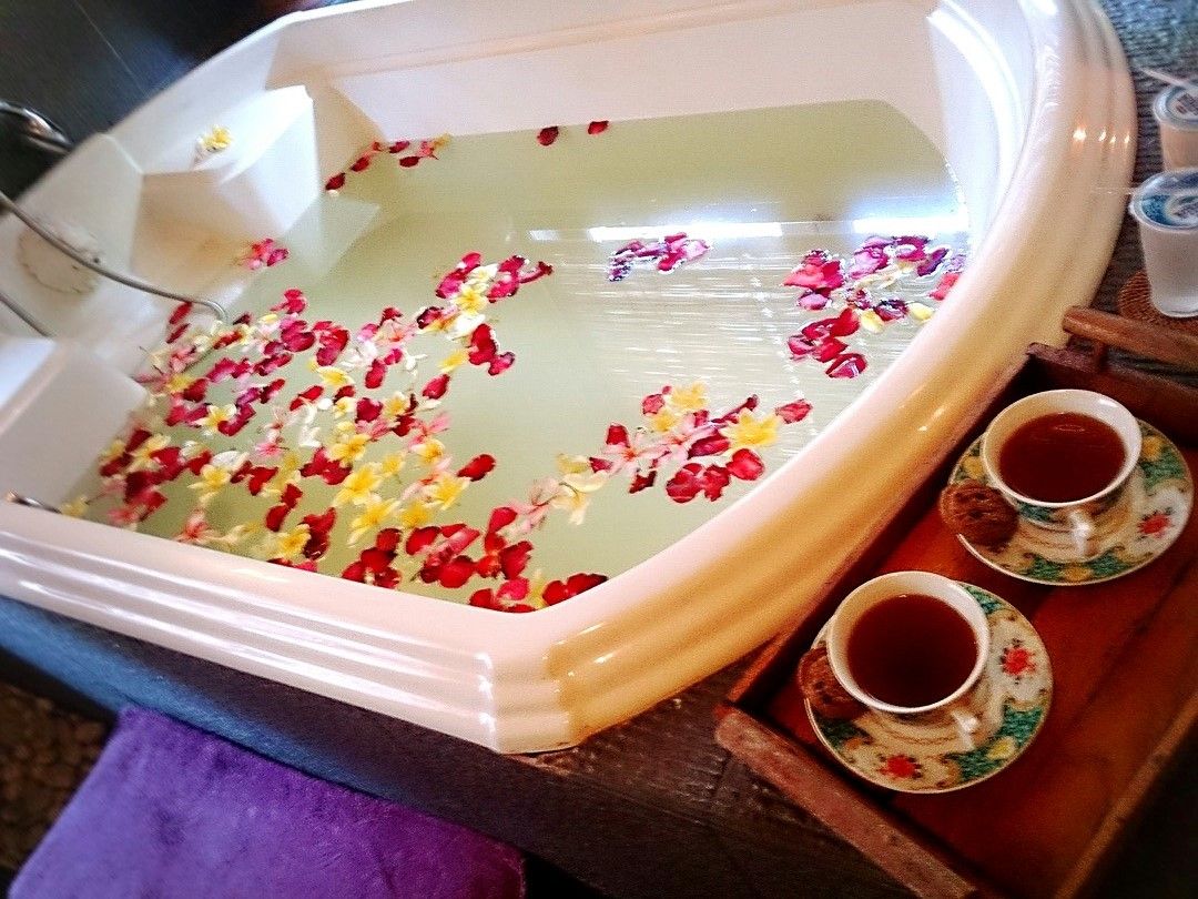 3時間半のコースでしたが、次はもっと長いコースに挑戦したいです。クリームバスは日本に帰国してからも、しばらくしっとり感が続いていて、効果抜群でした!!フラワーバスに入りながら飲んだお茶すごくおいしかったです。友達にも喜んでもらえてよかった!!また行きたいです。